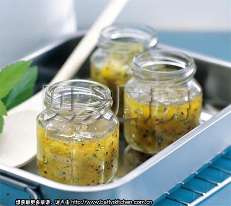 最后加入麦芽糖、朗姆酒再炖煮5分钟,放入薄荷细碎,搅拌均匀,离火晾凉,装瓶即可。