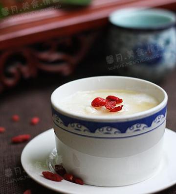 3)盛入碗内浇上蜂蜜,洒上用开水烫过的枸杞,即可。