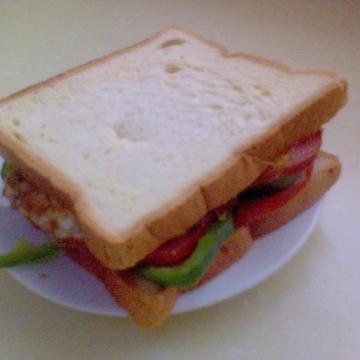 切面面包两片,,火腿四片,青椒半个,西红柿半个,鸡蛋一个