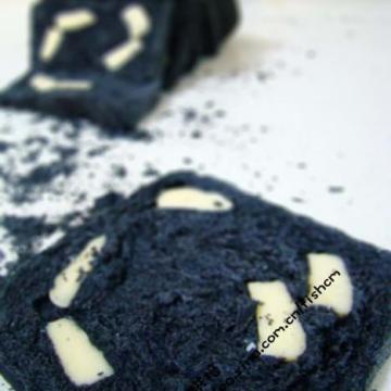 土司面包面团:a料:高筋面粉300克,细砂糖30克,盐1/2小勺,燕子酵母4克(1小勺)奶粉25克,竹炭粉2克,水165克,b料:无盐奶油20克,高熔点的切达奶酪100克