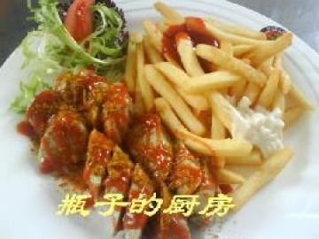 第一种:西餐菜谱烤咖喱香肠配薯条做法