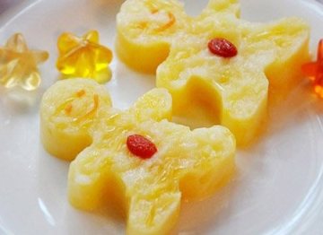 ——接下来就随性发挥,开始装饰啦:红豆可以做眼睛,枸杞子当嘴巴也不错的,薄薄的胡萝卜片可以剪成“眉毛”,“胡子”,“嘴巴”等等任何你想要的图案。