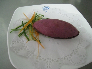 1、新鲜紫薯洗净风干后,入烤箱烤熟(上火220度)