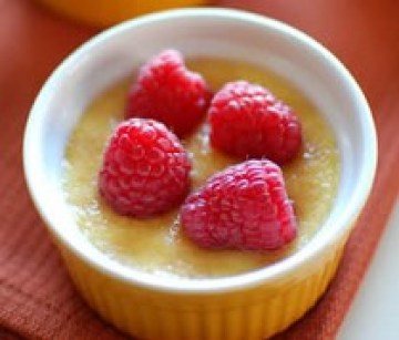 400毫升鲜奶油/heavy cream; 1小勺柠檬皮屑/finely grated lemon zest; 1/2小勺香草精; 4个蛋黄; 1.5大勺白糖; 红糖若干; raspberry若干