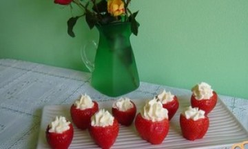 5. 将拌好的奶油奶酪挤入草莓中即可