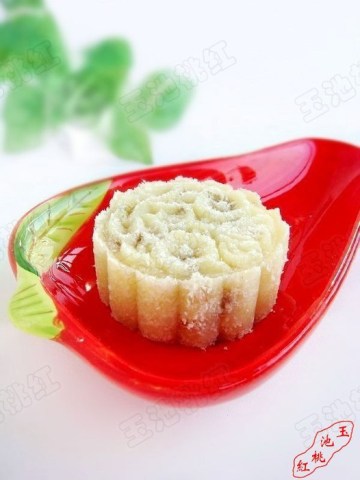 4.取适量揉成团状,均匀沾裹上椰蓉后放入月饼模型中压实,脱模即可。