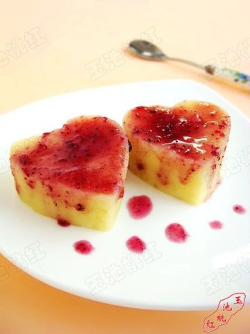 土豆1个,山药半根,白糖,蓝莓酱