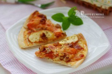 第二种:西餐菜谱加了桃仁的果香鸡肉无边脆底披萨做法