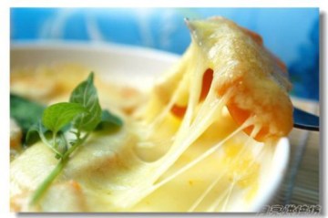3.入烤箱180度烤15分钟左右,至芝士表面金黄色就可以了