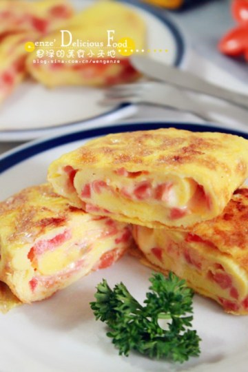 第一种:西餐菜谱火腿番茄奶酪鸡蛋卷做法