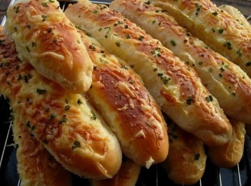 高粉195克,低粉90克,酵母6克,盐6克,细砂糖30克,奶粉12克,全蛋60克,水65克,汤种75克,无盐黄油45克,芝士碎,香葱末适量,车打芝士4片对齐等切12条