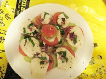 新鲜芝士ball,青瓜,番茄, 新鲜罗勒叶,洋葱小许