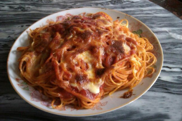 4.盛入耐热碗中,表面撒上马苏奶酪,烤箱200度烤15分钟至奶酪完全融化即可。