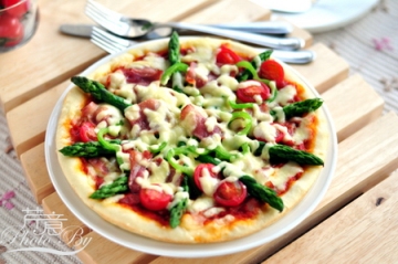 第一种:西餐菜谱培根彩蔬薄脆披萨做法