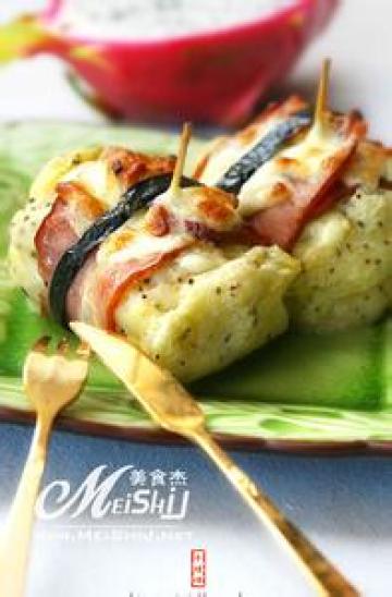 第一种:西餐菜谱培根奶酪焗土豆卷做法
