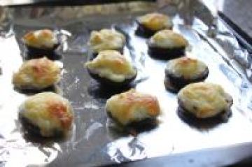 6.取出蒸好的香菇塔,放到铺了锡纸的烤盘中