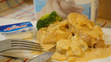 主菜料:猪里肌肉2條 (忘記份量了,只記得對著用繩綁好以後大約長20x4.5cm),洋蔥頭2個,馬鈴薯3個,法國dijon芥末5大匙,白葡萄酒100ml,牛高湯200ml,沙拉油適量,奶油適量,鹽適量,胡椒適量
