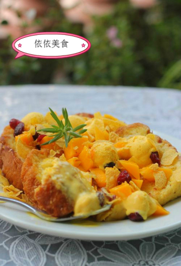 第二种:西餐菜谱法式吐司配芒果冰淇淋做法