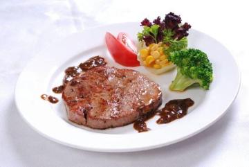 正部位牛肉150g、黑胡椒酱20g、专用牛排黄油7g