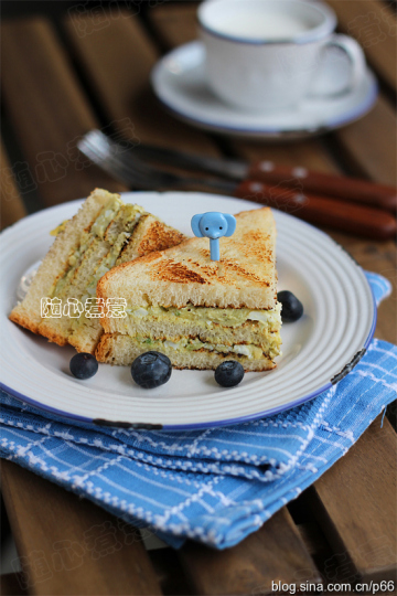 6. 将牛油果鸡蛋沙拉酱涂抹在土司上,组合成三明治即可。