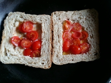 2.因为我怕同时吃2个鸡蛋有点多,所以 我每次做2片面包时候,都是放一半鸡蛋的。 这样 早上吃一个鸡蛋对于我来说就够了。
