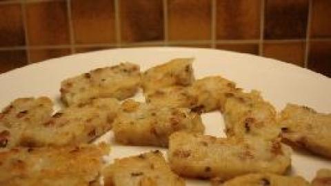 5.- 把蒸好的萝卜糕拿出来放凉。别心急,放凉之后才比较成型好切。放凉之后切成1cm左右的片,然后用平底锅煎来吃。不用煎直接吃也行,那样更健康,不过貌似煎了更香啊~