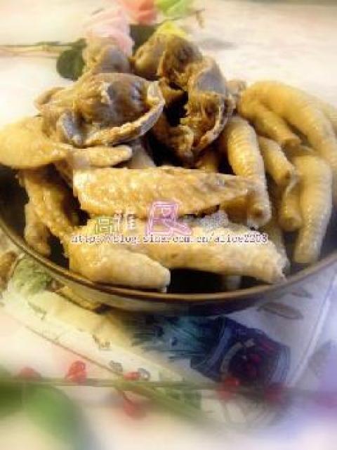 1.将鸡脚,鸡肾和鸡翅尖清洗干净,鸡脚剪去爪尖,放入开水煮大约3分钟,捞出,用清水把污沫冲洗干净;