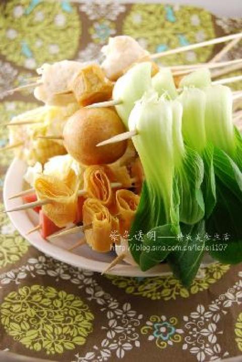 ps: 1.每种菜品不易多,都有几样可以品到不同的味道。 2.没有深斗的砂锅,也可以用大一点的锅子,没的过菜就行。 3.菜品完全可以自由替换,根据自己的喜好搭配。 4.竹签不是必须的,没有的话可以直接涮的哈,我就是觉得好玩,太贪玩了,呵呵。