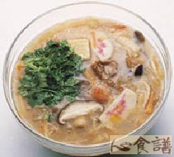 (5)高汤烧开后,将所有的材料放进去,加水熬煮,加调味料,最后用太白粉芶芡。