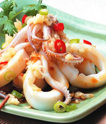 酸辣花枝羹、五味软丝、柠香中卷、宫保双脆、三杯中卷