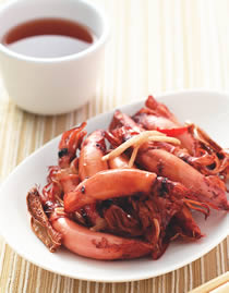 新鲜乌贼,蒜末,姜丝,油,酱油少许