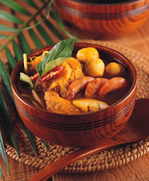 9、跟着也把香兰叶和咖哩叶投入慢火煮15分钟。