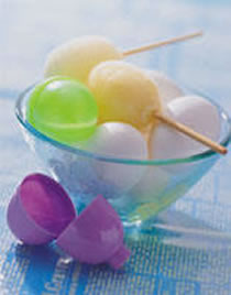 鸡蛋型模具数个,竹签数支,各种口味果汁适量
