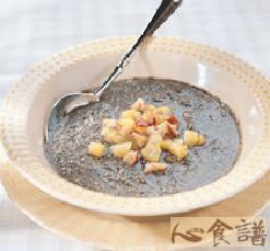 (3)加入芝麻粉拌匀盛入碗中,上面再撒上少许菠萝丁、红枣丁一起食用。