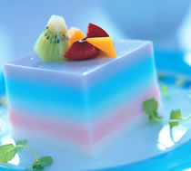 a.鲜奶1500公克,水1000公克,洋菜粉20公克,果冻粉 12公克,细砂糖200公克,杏仁露200公克,b.红石榴糖浆35公克,薄荷酒20公克,蓝柑橘糖浆30公克