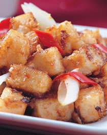 2.热油锅,加入所有调味料炒香后,浇淋在作法1的萝卜糕上即可。