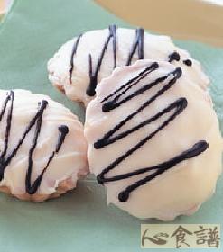 3.作法1表面沾上作法2白巧克力淋酱,待巧克力干硬后划上融化的苦甜巧克力装饰即可。