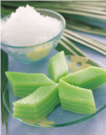 1、吃娘惹糕时,如果沾上椰子粉食用,风味更佳。以上配方为一个20×20公分模型的份量(1份)