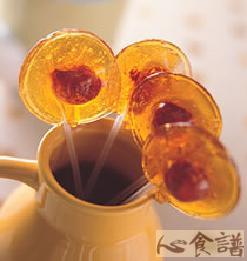 (2)在干净平盘上,将干梅子及棒子排列好,趁热将糖浆倒在梅子的四周成圆状,等凝固后用不�钢刀将棒棒糖取出即可。