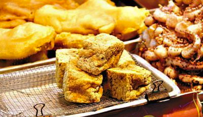 油汆臭豆腐、专业蛋挞、驴打滚。
