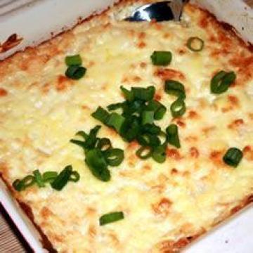 碎切达奶酪225克,蛋黄酱450克,紫洋葱2颗,切碎,碎意大利奶酪60克