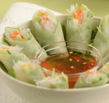 4) 用包春卷的方式包好卷紧。吃时配青柠蘸汁。