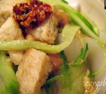 5.凉拌。晾凉后,切之,拌之~~再放些黄瓜丝~调料可根据自己的口味放,比如我放的:两勺麻酱、一勺醋、半勺酱油、香油、蒜泥、盐少许~最后淋些辣椒油~