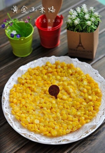 【材料】:甜玉米两根(煮熟后取下玉米粒净重约300g)、干淀粉四汤匙(约40g)、白砂糖适量