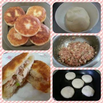 4、面团切小块,包入肉馅,要把口封好,不然煎时肉汁会流失。