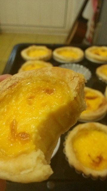 3、最后移到上层上色烤到挞水凝固出斑就可以了。烤的时候可能会鼓起来,别担心凉了以后就会塌下来了。
