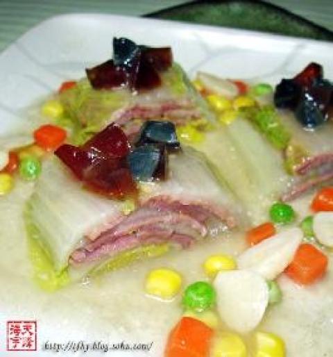 1.高汤用排骨汤或者鸡汤或者各种肉类熬的汤应该都可以,如果没有就用白水和鸡精调,不过口感上会差很多; 2.对娃娃菜和小白菜我分不大清,觉得娃娃菜就是小白菜的娃娃阶段啊~要好看就把整颗的娃娃菜一剖四,八过那样不好洗啊,就把叶片一切二吧~蔬菜部分也可以用菠菜,豌豆苗等其他的代替~ 3.刚才好象还想到啥要说的,这会突然想不起来了╮(╯▽╰)╭