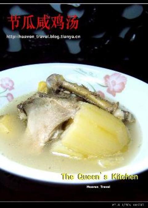 相关菜谱名称推荐:节瓜咸鸡骨汤,节瓜咸鸡骨汤,节瓜咸蛋汤,萝卜瑶柱咸鸡汤