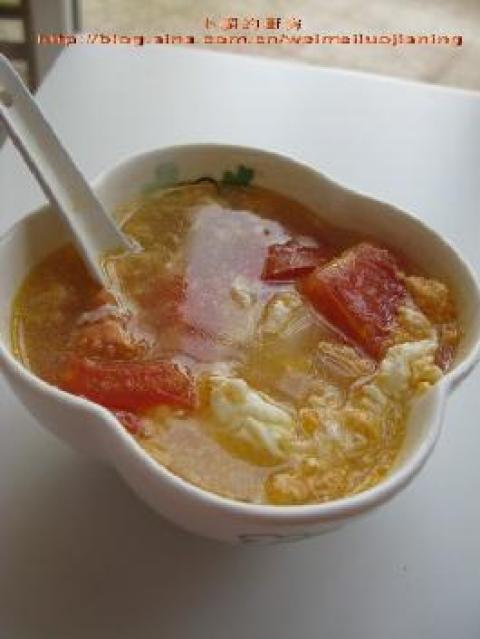 2.西红柿切好,锅也热了,放油,油热放西红柿放盐翻炒片刻,放热水,这样炒过的西红柿激出的汤比较好喝