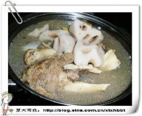 2、买新鲜猪脊骨(腔骨)炖莲藕也是一味好汤。